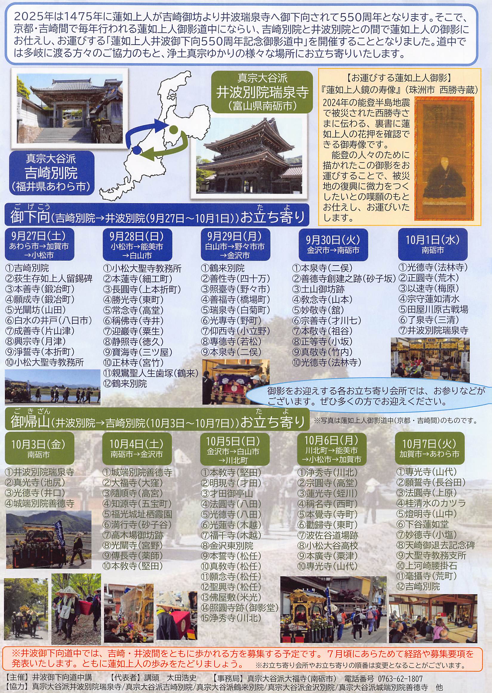 御下向 9月27日 吉崎別院出立〜10月1日 井波別院到着
